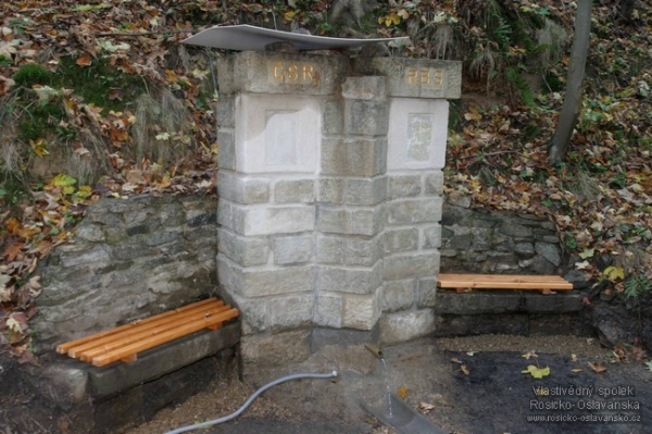 Netrpělivé očekávání slavnostního odhalení. Při děšti navlhla levá strana pro plaktu Masaryka. Naštěstí provizorní zastřešení pomohla okolí plakety do slavnostního otevření vyschlo. (Foto 21. října 2009).