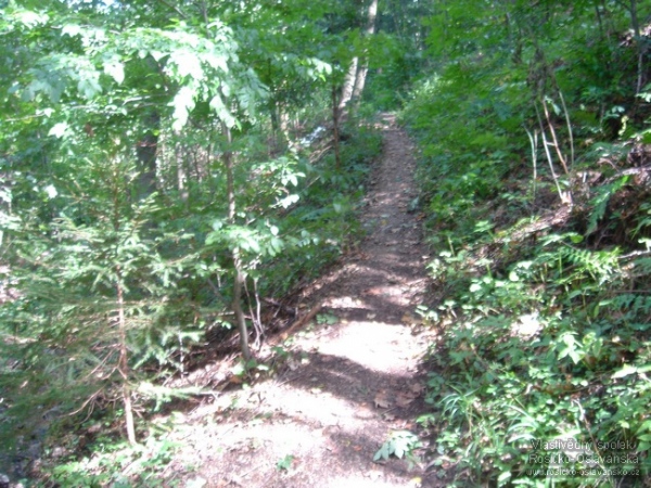 Přístupová cesta ke studánce dnes už opatřená dřevěným zábradlím z dílny rosických učňů nábytkářského učiliště a s proklestěným lesíkem kolem.
